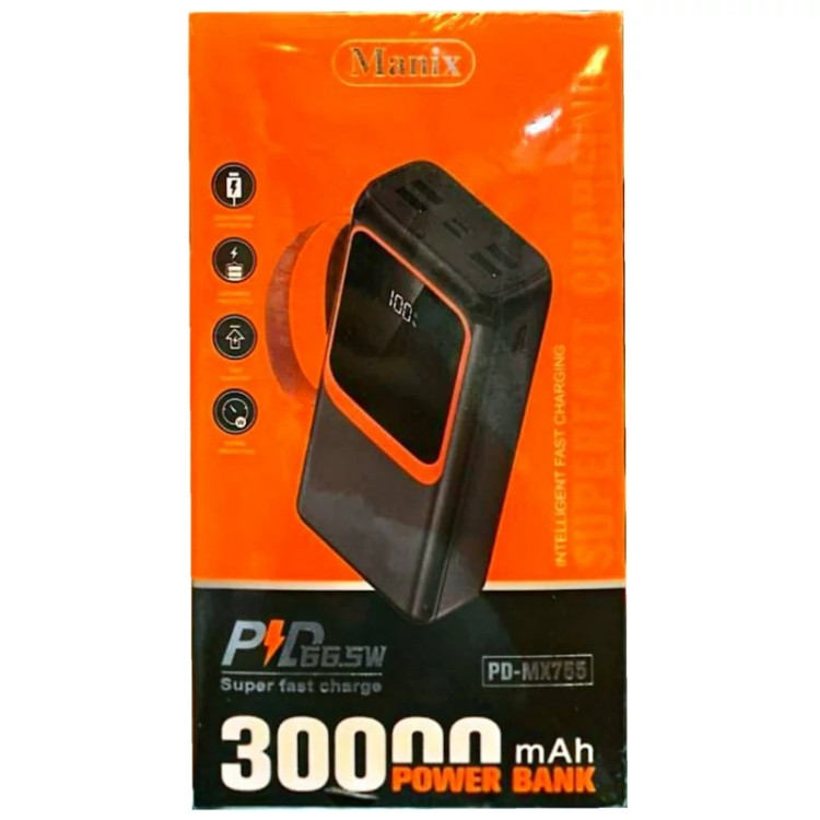 پاوربانک 30 هزار مدل MANIX MX755 سوپر فست شارژ با کابل سرخود اورجینال