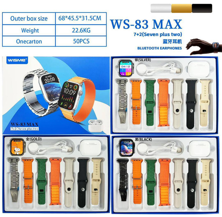 اپل واچ سری 10 اورجینال مدل WS 83 Max با ایرپاد پرو 2 اپل و 7 بند اضافه