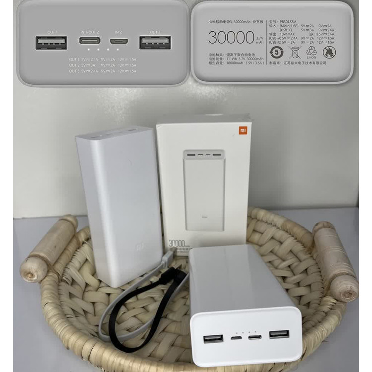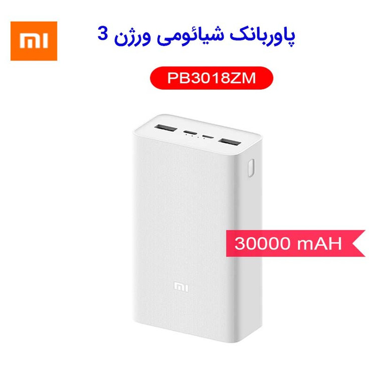 ورژن جدید پاوربانک شیائومی مدل Mi PB3018ZM با ظرفیت 30,000 میلی آمپر فست شارژ اورجینال با لیبل اصلی ✔️