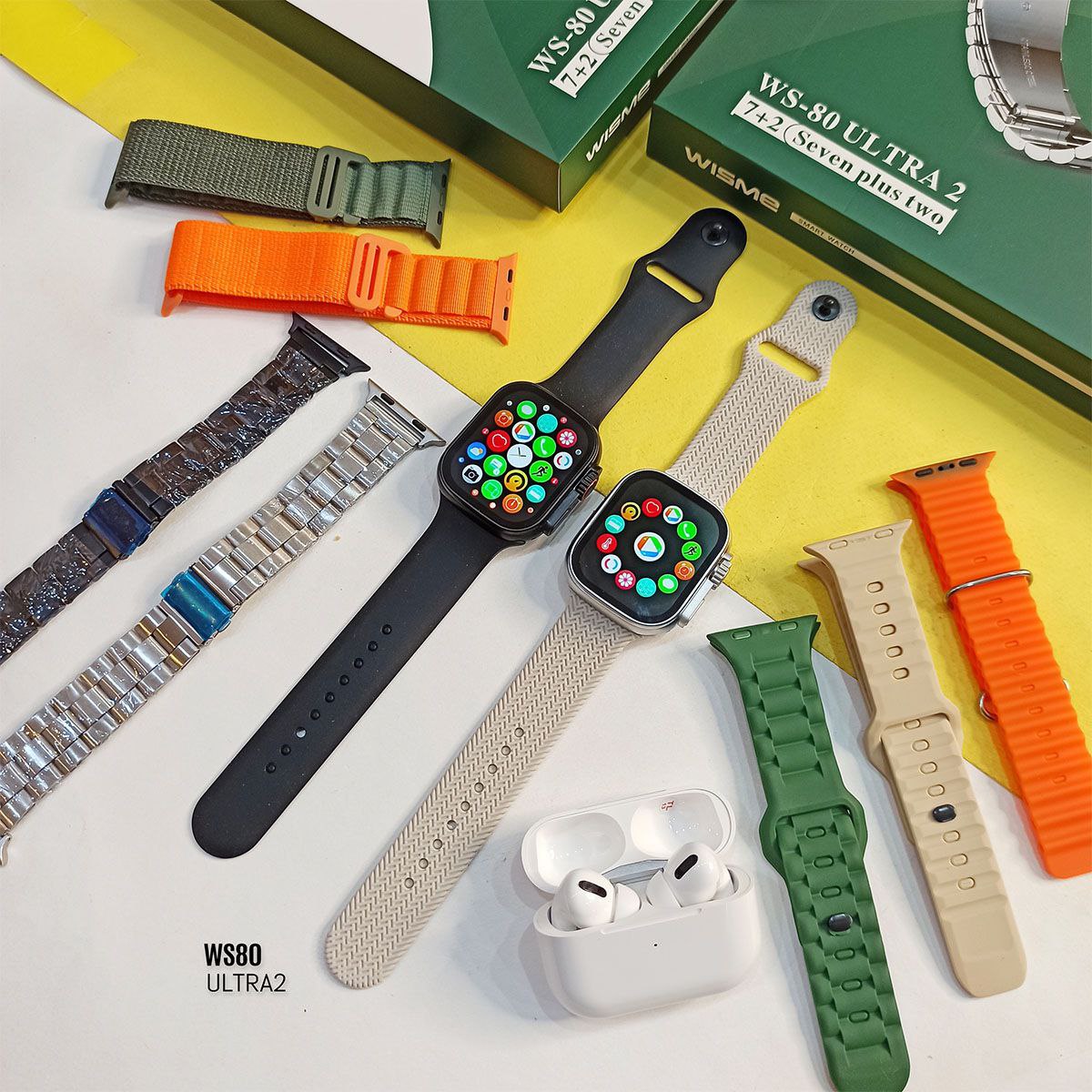 اپل واچ اولترا مدل WS 80 ultra 2 به همراه 7 عدد بند اضافه و یک عدد ایرپاد پرو 2 اپل ✔️