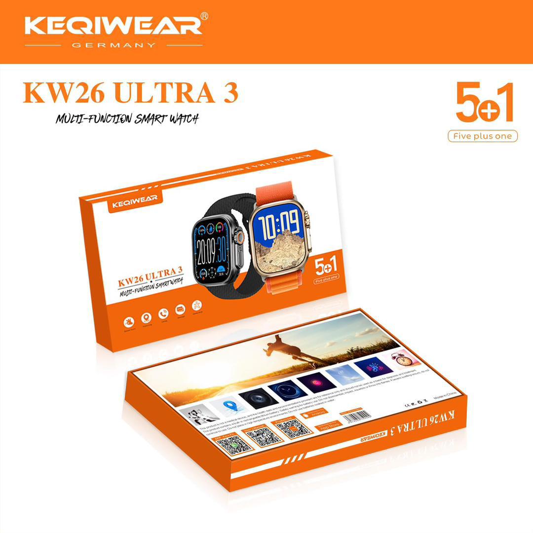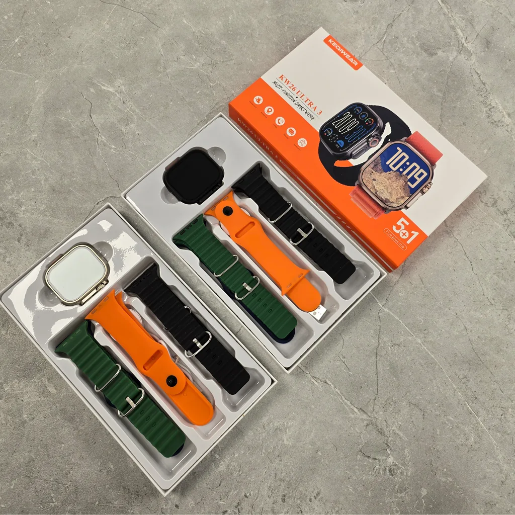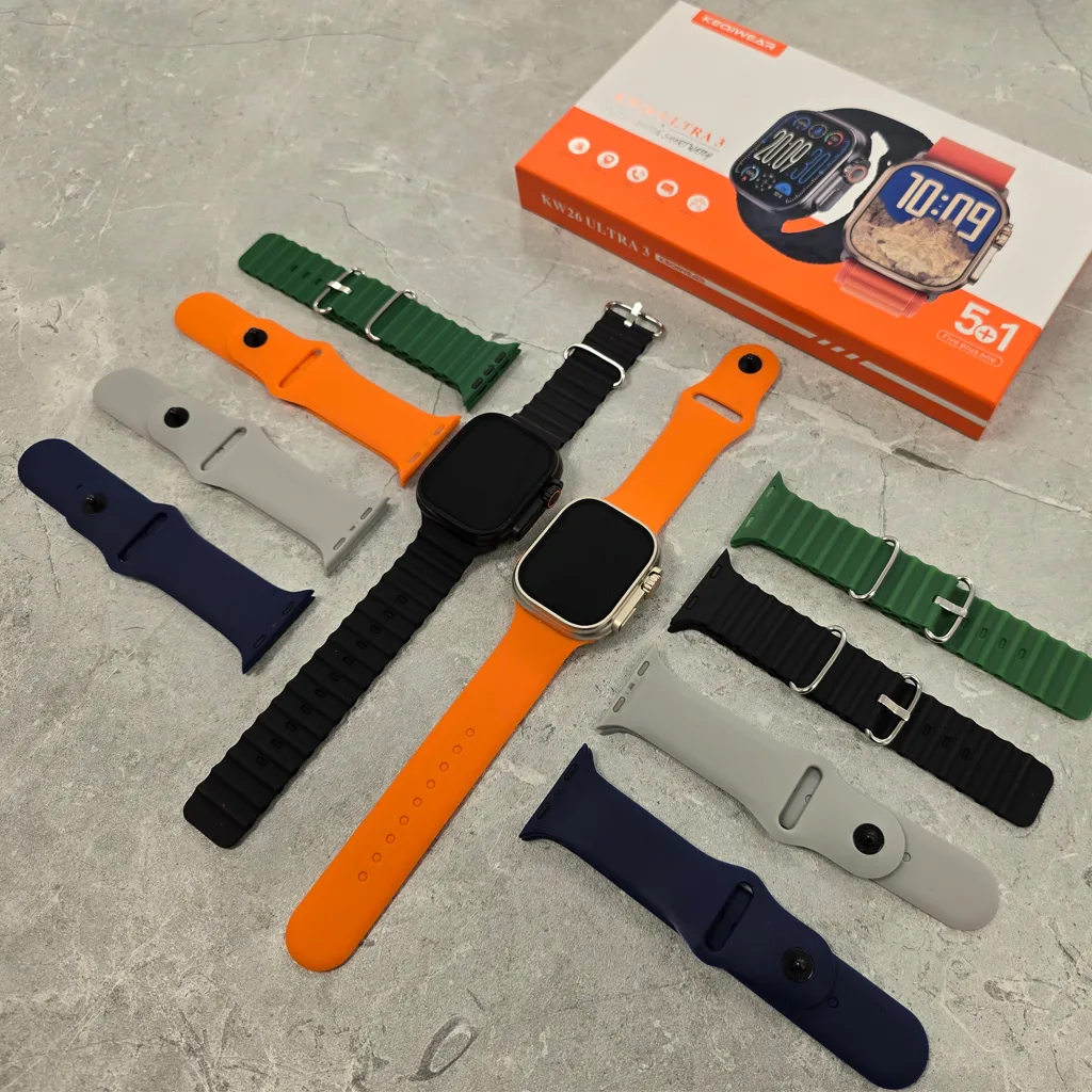 پک کامل اپل واچ اولترا مدل KW 26 Ultra به همراه 5 بند اضافه و شارژر ✅