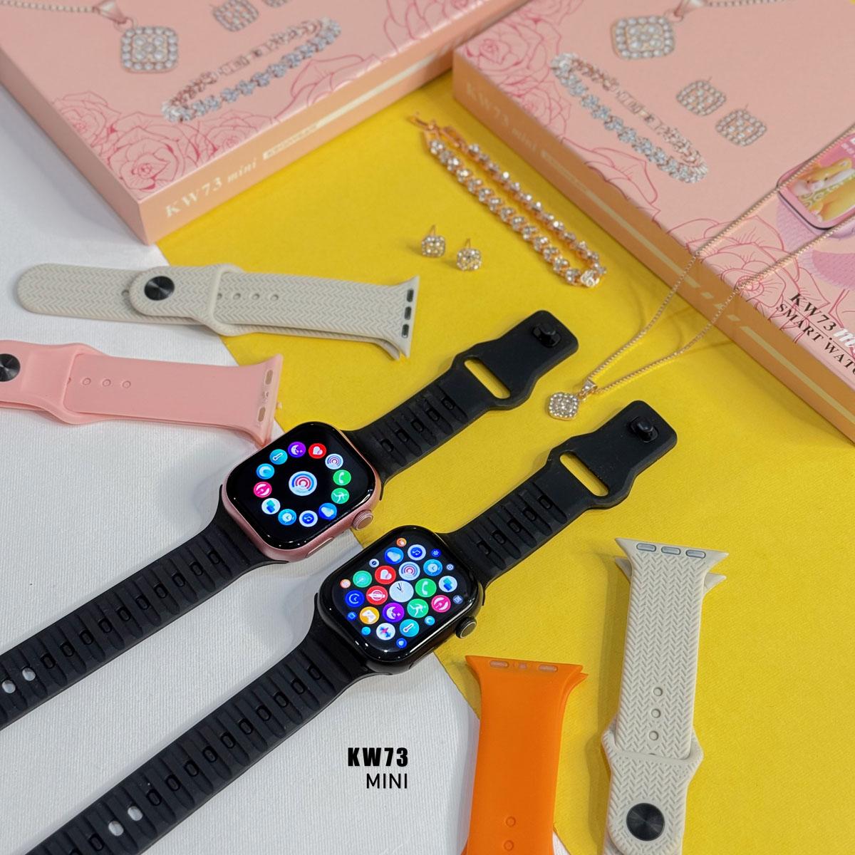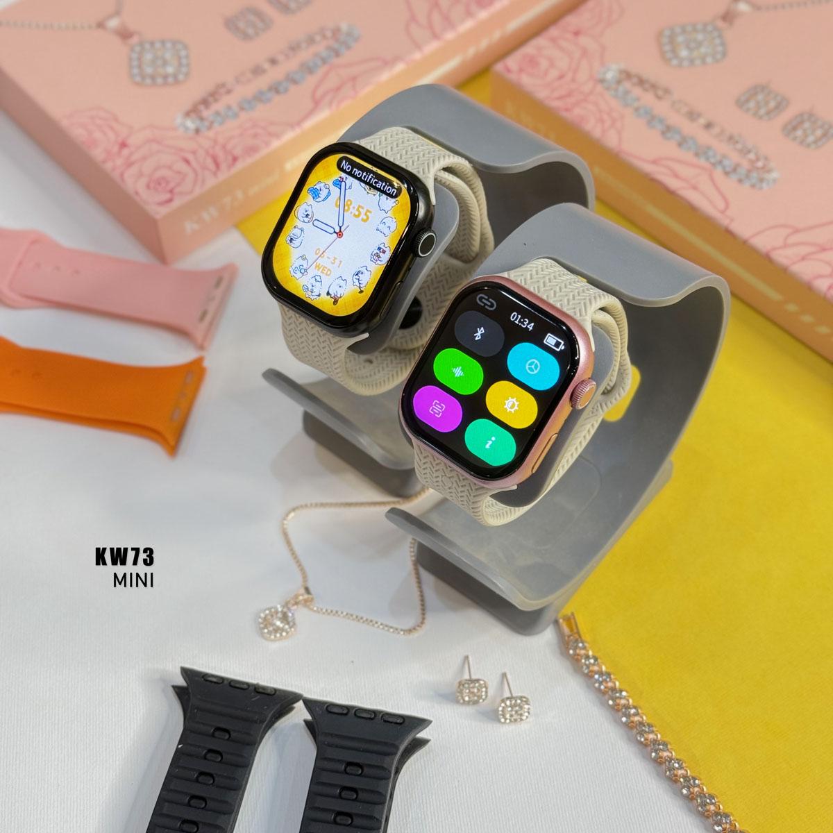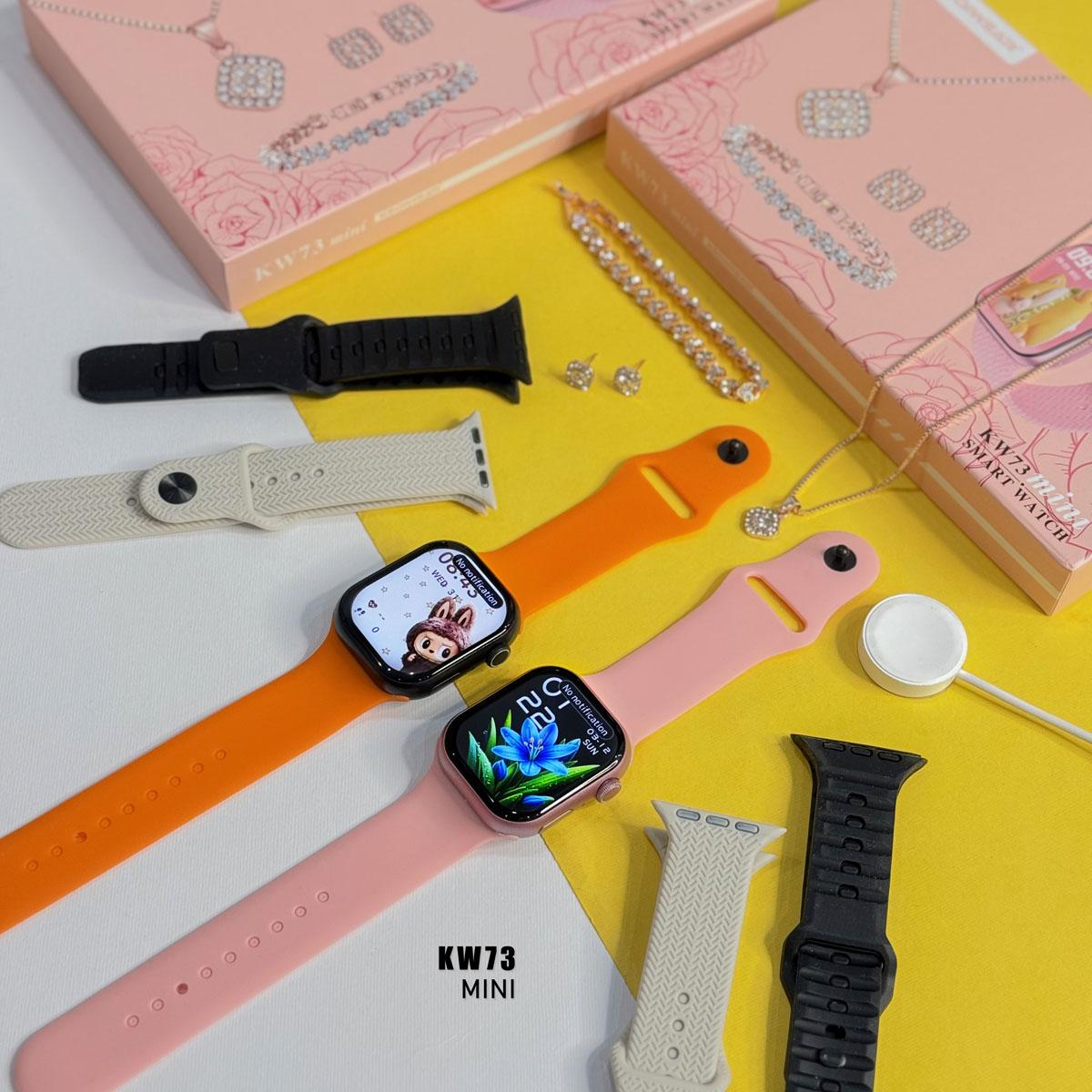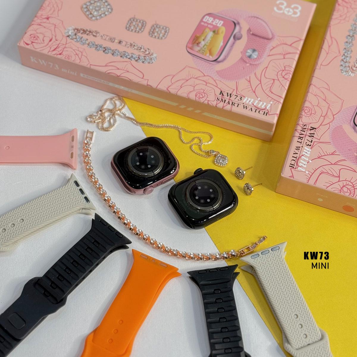 ساعت هوشمند دخترانه مدل KW73 با گوشواره دستبند گردنبند اورجینال و 3 بند اضافه