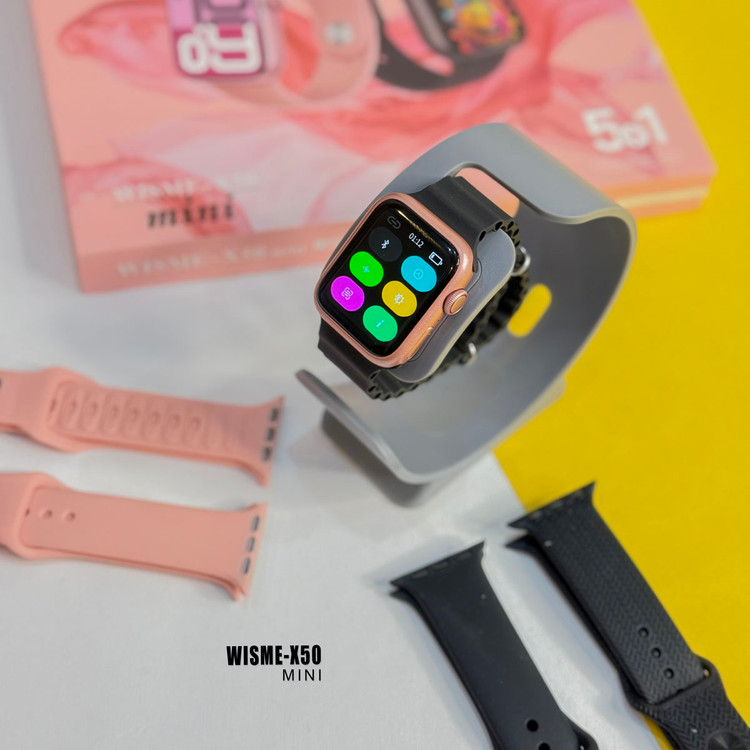 پک کامل اپل واچ دخترانه سری 10 مدل X50 Mini سایز 41 با 5 عدد بند اضافه ✔️