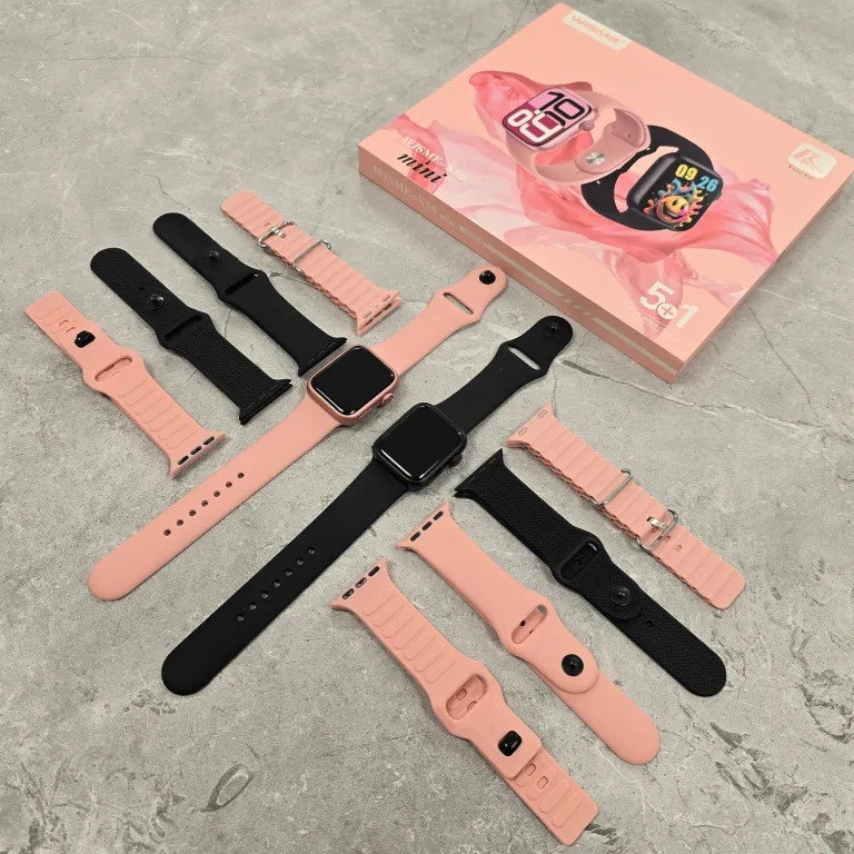 پک کامل اپل واچ دخترانه سری 10 مدل X50 Mini سایز 41 با 5 عدد بند اضافه ✔️