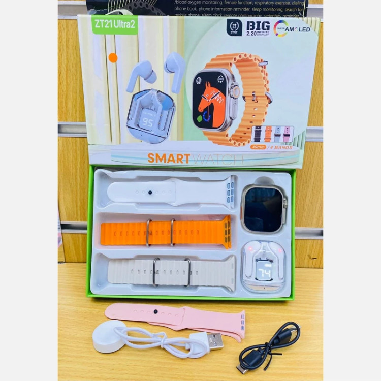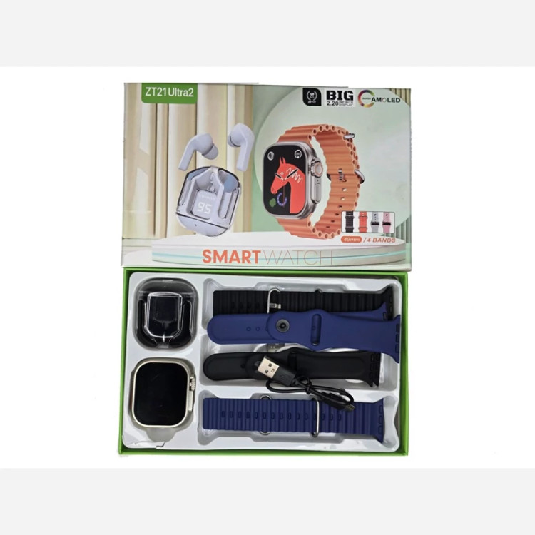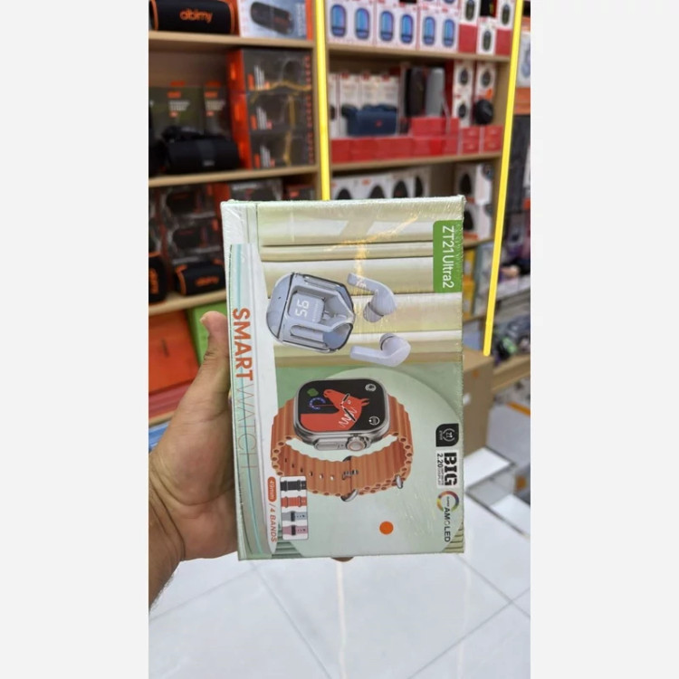 ساعت هوشمند مدل ZT21 به همراه ایرپاد شیشه ای و 4 عدد بند اضافه ✅ ساخت کشور آلمان ✅ ایرپاد ضد آب ✅ کیفیت ایرپاد عالی ، پخش صدا و بیس فوقالعاده قوی ضمانتی ✅ سایز 2.02 اینچ قابلیت گذاشتن تصویر زمینه دلخواه واچ فیس های مختلف نگهداری شارژ 1 الی 3 روز پردازنده دو هسته سازگار با تمام موبایل ها اندروید و آیفون همراه ایرپاد هدیه با کیفیت صدای بالا نمایش پیامک ها و شبکه های اجتماعی دارای سنسورهای سلامتی سنسور گام شمار سنسور ضربان قلب سنسور فشار خون سنسور اکسیژن خون دارای برنامه های ورزشی پشتیبانی از زبان فارسی قابلیت نمایش اعلانات به زبان فارسی قابلیت پاسخ به تماسهای ورودی با حرکت مچ دارای جدیدترین واچ فیس ها سرعت عالی منو دارای پین پشتی صفحه نمایش فول اسکرین ریموت دوربین عکاسی و موزیک پلیر ماشین حساب ، کورنومتر سازگار با سیستم عامل اندروید و ios محتوی جعبه: ساعت، 4 بند، ایرپاد، شارژر وایرلس ساعت، کابل شارژ