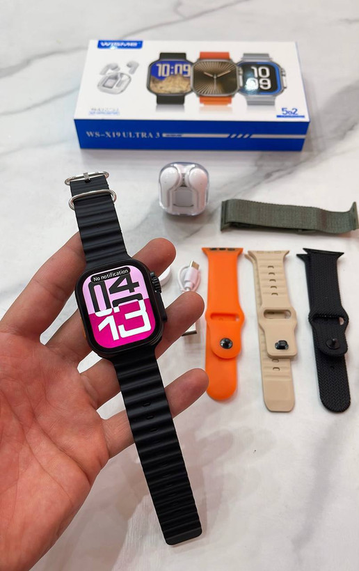 با هزینه یک عدد ساعت هوشمند ، یک عدد ایرپاد شیشه ای و 5 عدد بند اضافه هم هدیه بگیر ✔️