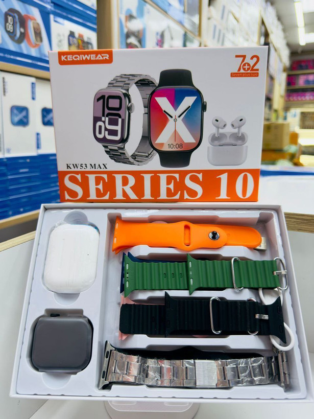 ساعت هوشمند مدل KW53 سری 10 به همراه ایرپاد پرو 2 اپل و 7 بند اضافه اصل